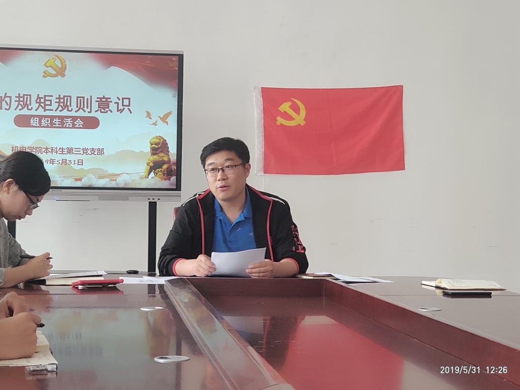 根据学校纪委《关于开展第八届“廉政文化建设月”活动的通知》要求,5月31日,太阳成tyc7111cc本科生第三党支部于机电楼518开展“我的规矩规则意识”专题组织生活会,本次组织生活会由党支部书记王作…