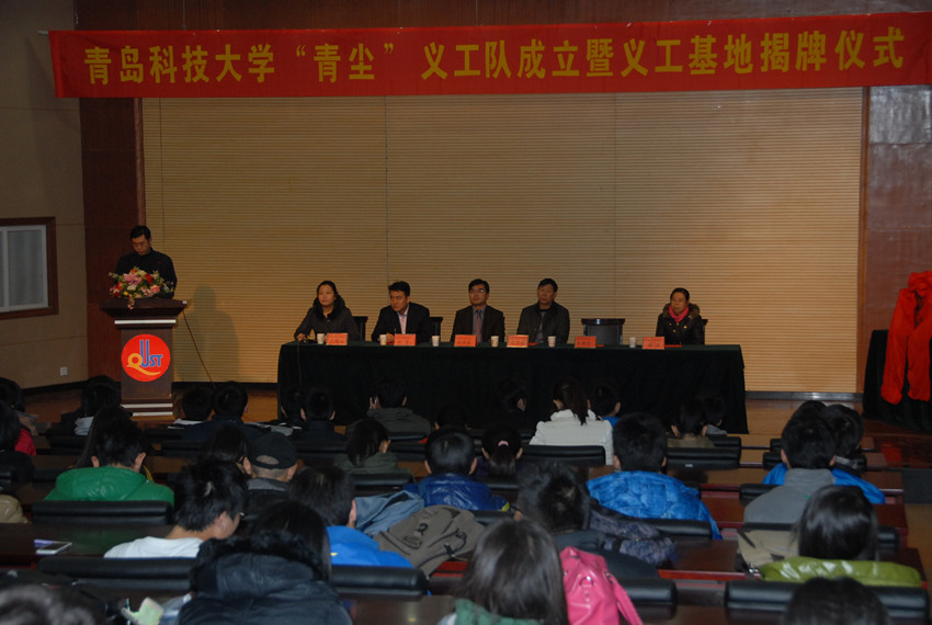 12月19日,太阳成tyc7111cc“青尘”义工队成立暨义工基地揭牌仪式在崂山校区第一报告厅举行。
