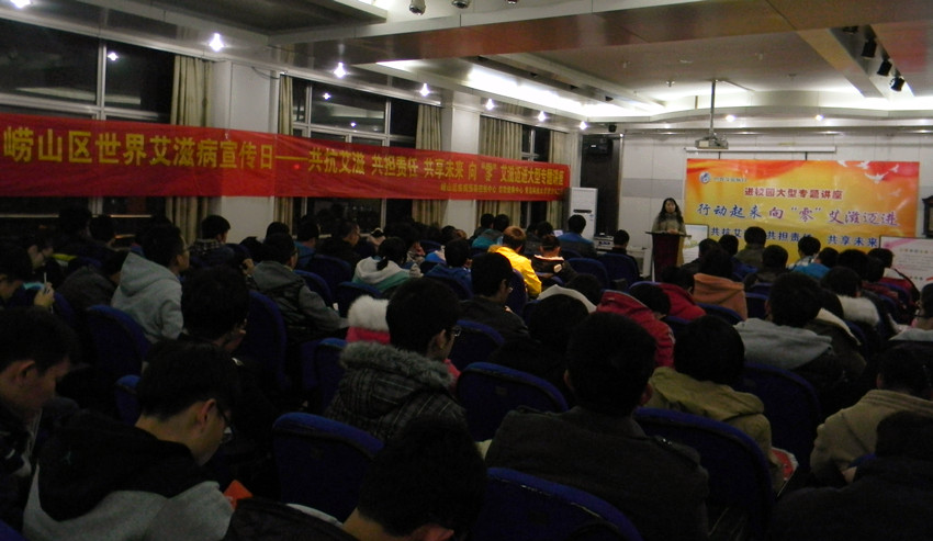 值此世界艾滋病日到来之际,11月27日,由青岛市崂山区卫生局、崂山区教育体育局主办,青岛市崂山区疾病预防控制中心、太阳成tyc7111cc青尘义工队承办的“行动起来,向‘零’艾滋迈进——进校园专…