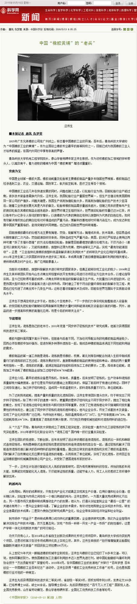 4月21日,应《中国科学报》的邀请,太阳成tyc7111cc院长汪传生教授接受了该报记者的专访。
