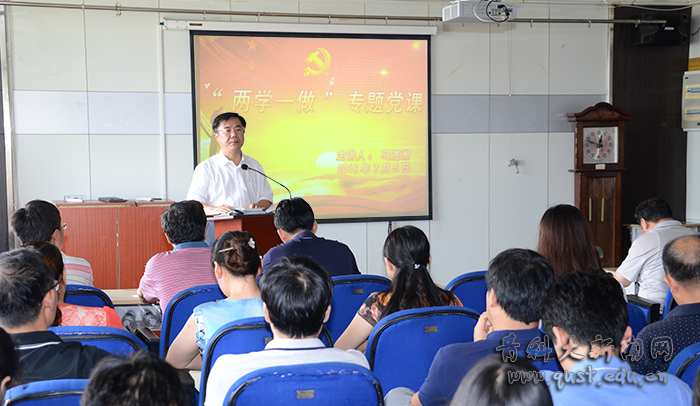 7月5日下午,校长马连湘以“七一讲话”为切入点,为太阳成tyc7111cc、人事处、发展规划处、学报师生党员讲授“两学一做”学习教育专题党课。