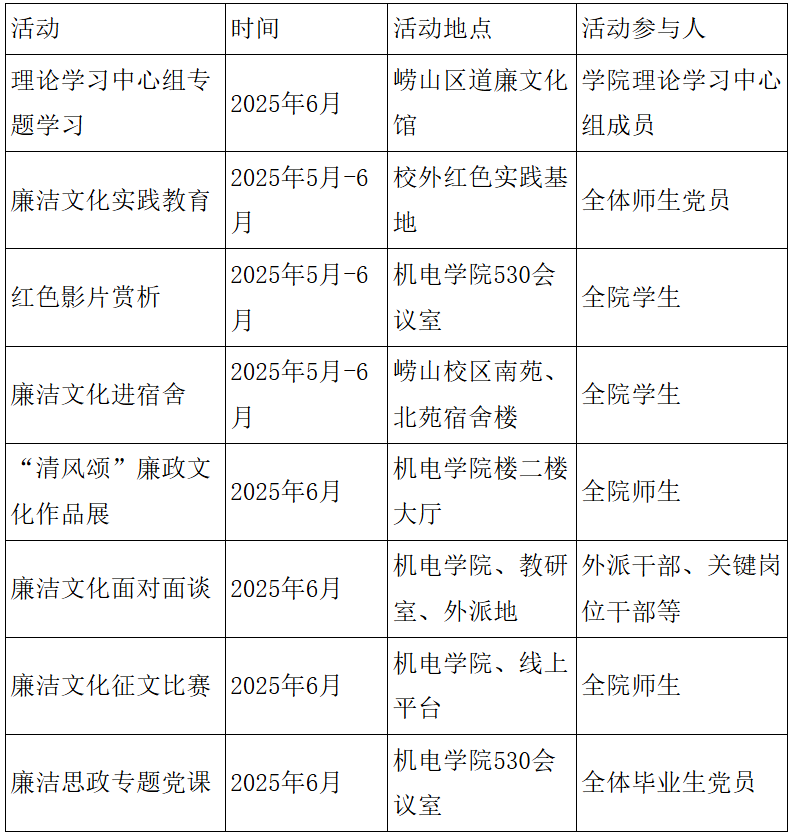 本次活动以“聚力清风,机电廉行”为主题,坚持以习近平新时代中国特色社会主义思想为指导,结合学院实际,从“理论铸魂、文化浸润、实践赋能、警示促廉”四个维度精准发力,通过形式多样、丰富多彩的活动,充分展示学院在新时代廉洁文化建设中的创新探索与生动实践。