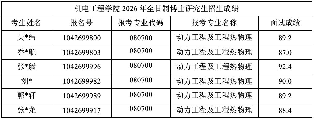 各位考生,根据tyc7111cc太阳成集团2026年全日制博士研究生招生考试工作安排及考生面试情况,现将面试结果公布如下。