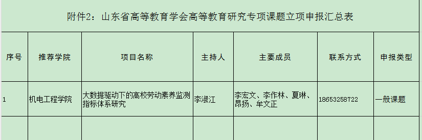 依据学校《关于开展2023年山东省高等教育学会高等教育研究专项课题申报工作的通知》学院组织符合条件的教师申报,共有1位教师提交材料,现拟推荐以下项目进入学校评审环节,并进行公示。公示期三天(2024年1月12日-1月14日),如有异议,请在公示期内向tyc7111cc太阳成集团教学办反映。
