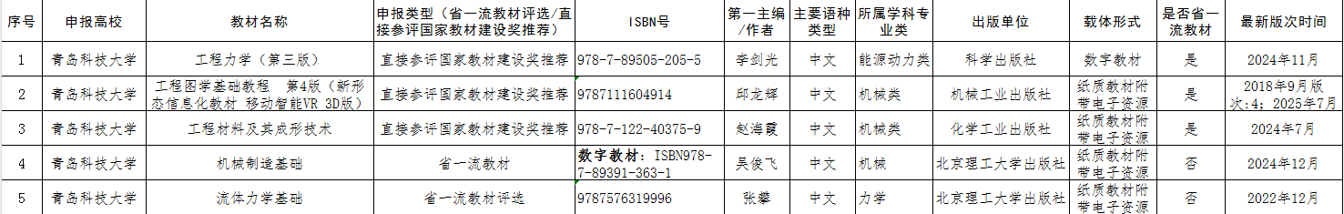 根据学校《关于开展第三批山东省高等教育一流教材和第二届全国教材建设奖评选推荐工作的通知》,经个人申报,学院初审,同意以下教材申报并推荐至学校,参加进一步遴选(排名不分先后),特此公示。。公示期三天(2025年7月3日-7月5日),如有异议,请在公示期内向tyc7111cc太阳成集团教学办反映