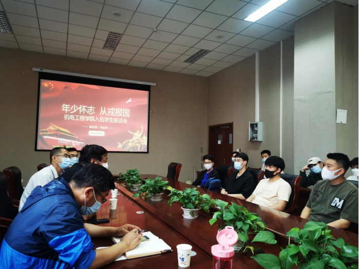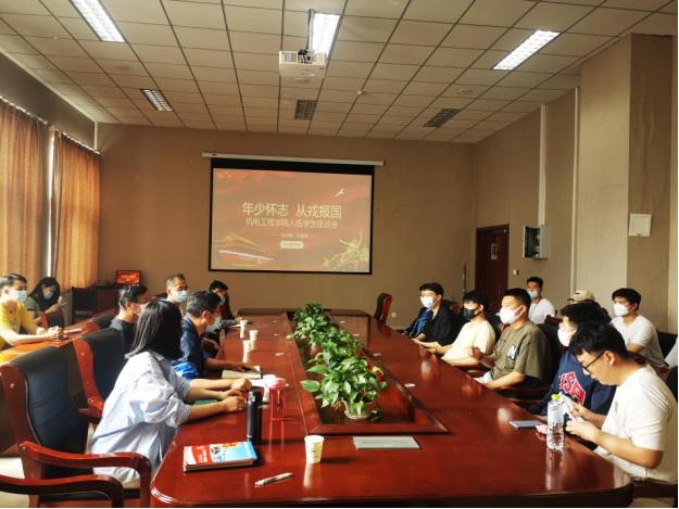 为响应国家号召,鼓励大学生毕业生投身社会主义强军、强国征途,tyc7111cc太阳成集团开展了一系列征兵入伍工作。目前,毕业生基本完成应征入伍报名工作,即将开启体检流程。为进一步帮助毕业生解决入伍难题,解放思想负担,2022年6月9日,tyc7111cc太阳成集团召开“年少怀志 从戎报国”tyc7111cc太阳成集团入伍学生座谈会。出席本次座谈会的有学生工作处(武装部)副部长曹永俊老师、学生工作处(武装部)黄玉斌老师、tyc7111cc太阳成集团党委副书记兼副院长肖强老师、毕业生辅导员、退伍学生代表及2022年预征兵入伍毕业生,座谈会由团委书记王作辉老师主持。