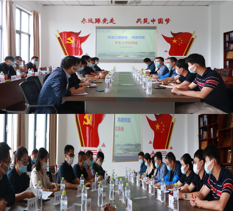 杨化林、肖强对高密校区一行表示欢迎。双方就队伍建设、年级管理、大学生科技创新与学科竞赛、宿舍管理、就业管理等工作进行了深入交流,分享了各自好的经验做法,并就当前工作中存在的问题进行了深入探讨。
