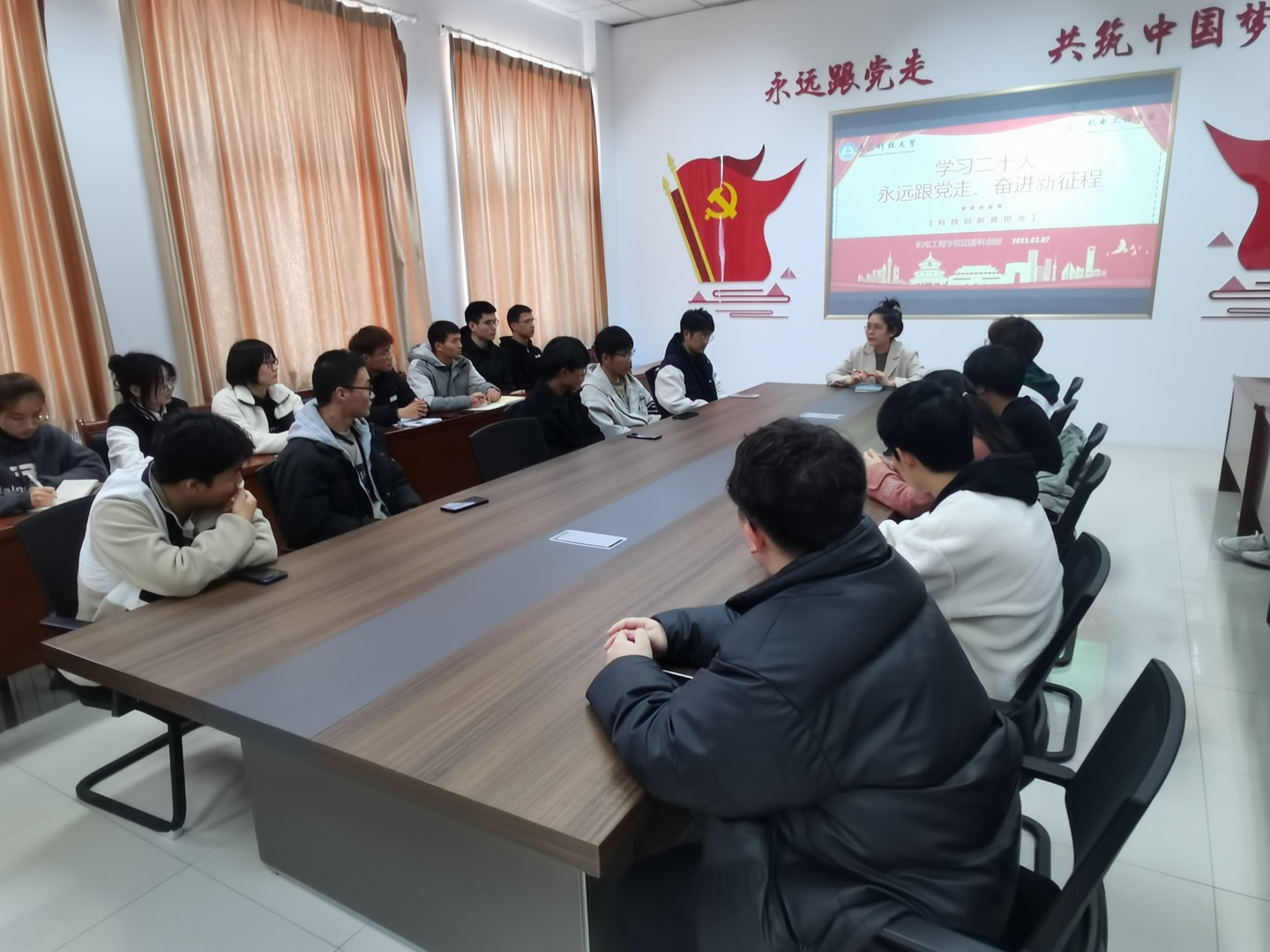 学院团委科创部为深入学习贯彻党的二十大精神与习近平总书记关于科技创新的重要论述,引导学院青年学生厚植科技报国的家国情怀,科创部指导老师许婷婷组织科创部全体成员开展专题培训。许婷婷带领大家共同学习了党的二十大报告中关于科技创新部分的内容,并对新学期的工作进行部署,鼓励成员积极投入本学期的工作中来,在新时代奋进之路上发光发热。