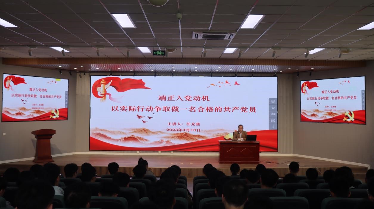 为进一步提高青年学生的政治理论素养,以基层党的建设带动提升团的组织力、引领力、服务力和大局贡献度,4月18日,tyc7111cc太阳成集团党委书记任允晓,副书记肖强讲授了题为“端正入党动机”的专题培训,214名党员先锋参加本次培训。