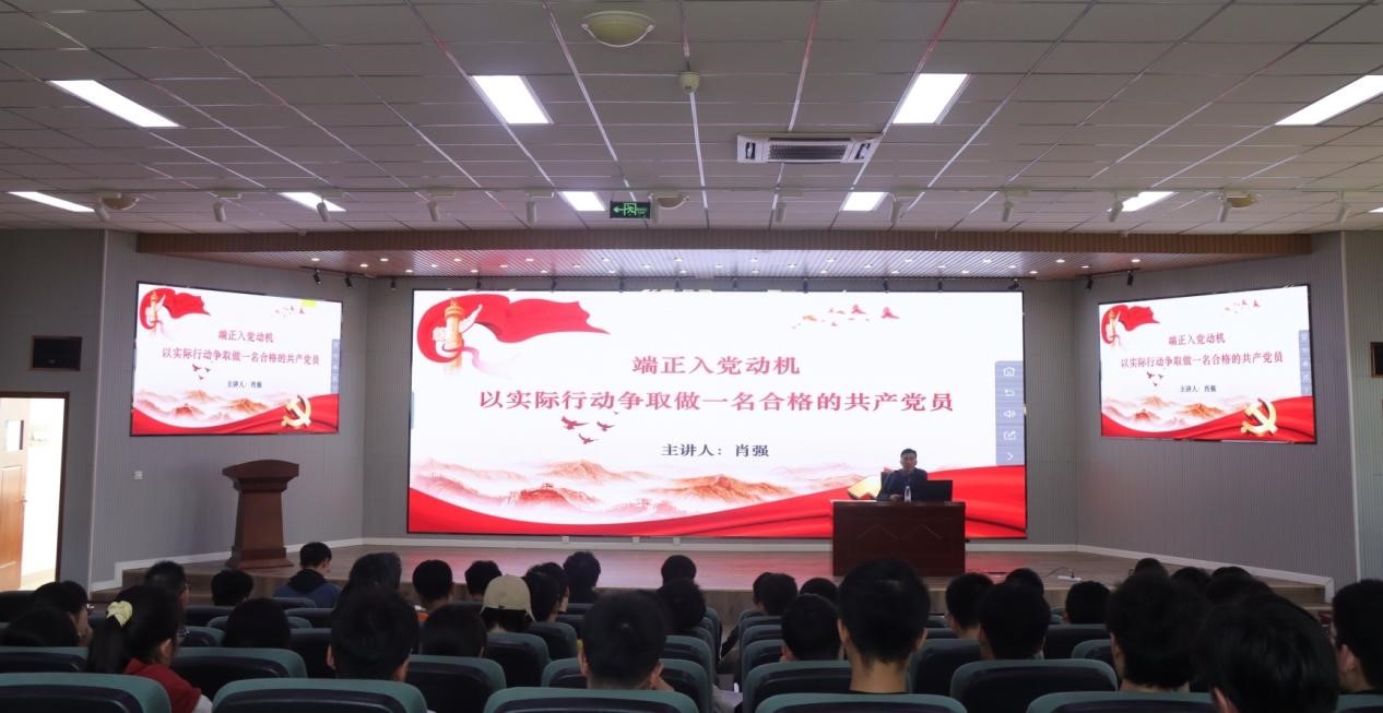 任允晓从党的性质、行动指南,入党积极分子对党的认同和学生自身实际出发引导学生正确认识入党问题,努力端正入党动机;从建党以来到新时代各个不同时期的党员为祖国的发展所做的贡献,在不同的岗位上践行入党的初心使命,深入浅出的剖析了不断端正入党动机的重要性。肖强从树立正确的入党动机是争取入党的首要问题;严格按照党员标准要求自己,以实际行动争取做一名合格的共产党员三个方面展开讲授,旁征博引,深入浅出。