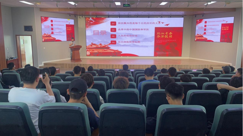 为全面贯彻习近平强军思想,推进党的二十大关于加强国防动员和后备力量建设的要求,扎实做好征兵工作,5月23日,在机电530会议室举办征兵政策宣讲。青岛市市北区征兵办公室郭群、学校征兵工作站负责人黄玉斌、外国语学院征兵工作站王雨昕、中德科技学院征兵工作站李怡然、法学院征兵工作站王宇、tyc7111cc太阳成集团征兵站于超,学院2023届毕业生、在校生130余人参加会议。
