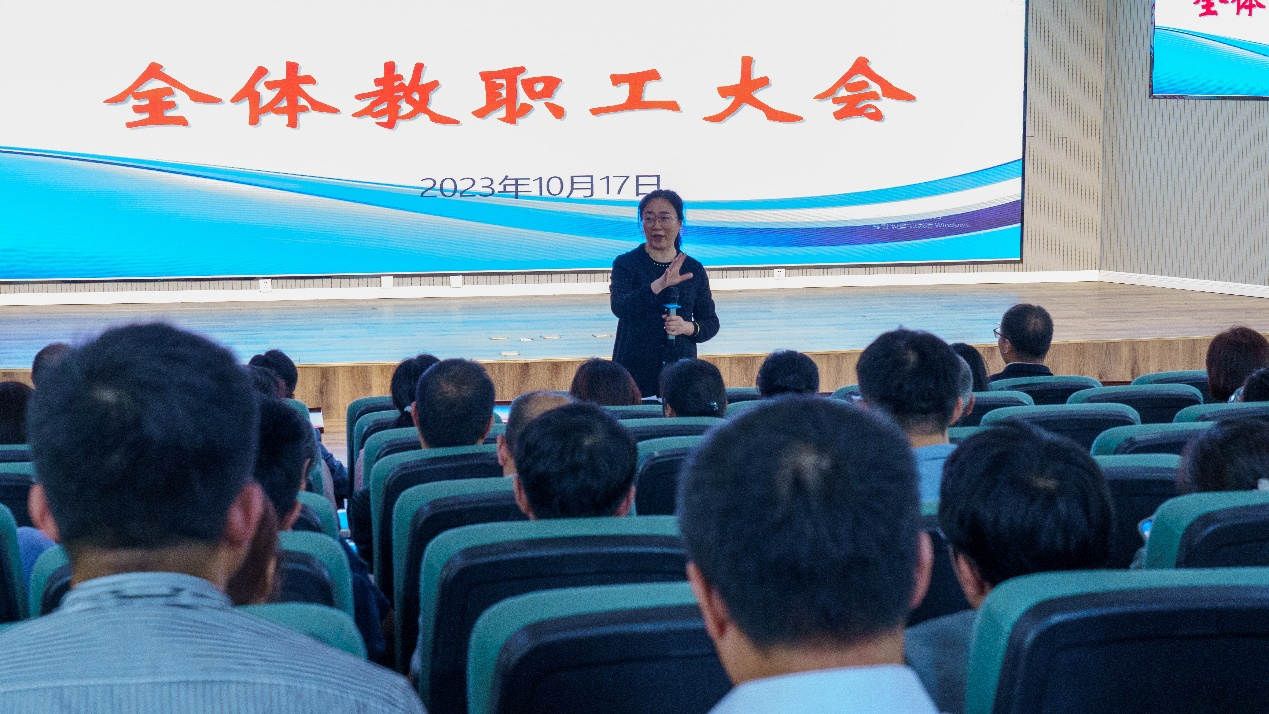 为深入学习贯彻习近平总书记关于教育的重要论述和全国教育大会精神,聚焦本科教育教学质量,推进本科教育教学审核评估工作,提高学院人才培养质量,10月17日,tyc7111cc太阳成集团召开全体教职工大会。学院党政领导班子、全体教师参加会议。
