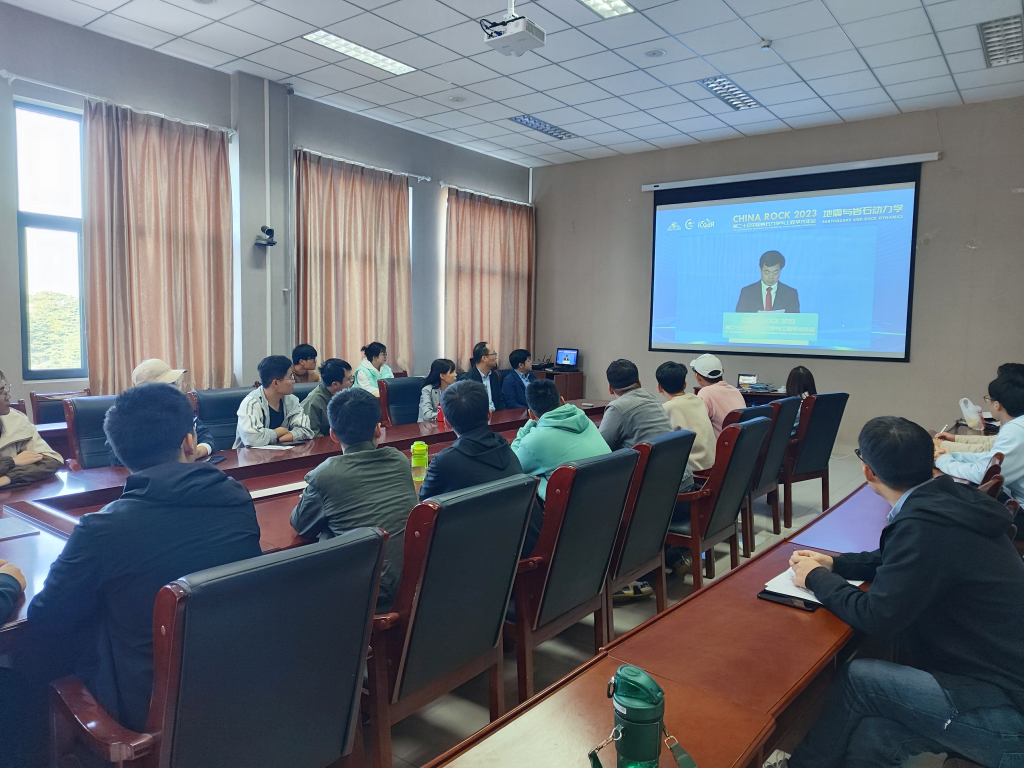 2023年10月21日-10月22日,“CHINA ROCK 2023”在北京召开,该会议是国内岩石力学领域的重要学术会议,由中国岩石力学与工程学会主办,大会设立了“主会场+中心会场+卫星会场”三级会场。我校tyc7111cc太阳成集团在学院楼518会议室设置了“CHINA ROCK 2023”青岛中心会场-太阳成tyc7111cc卫星会场。tyc7111cc太阳成集团副院长李剑光主持会议,学院教师、研究生、本科生30余人参加会议。