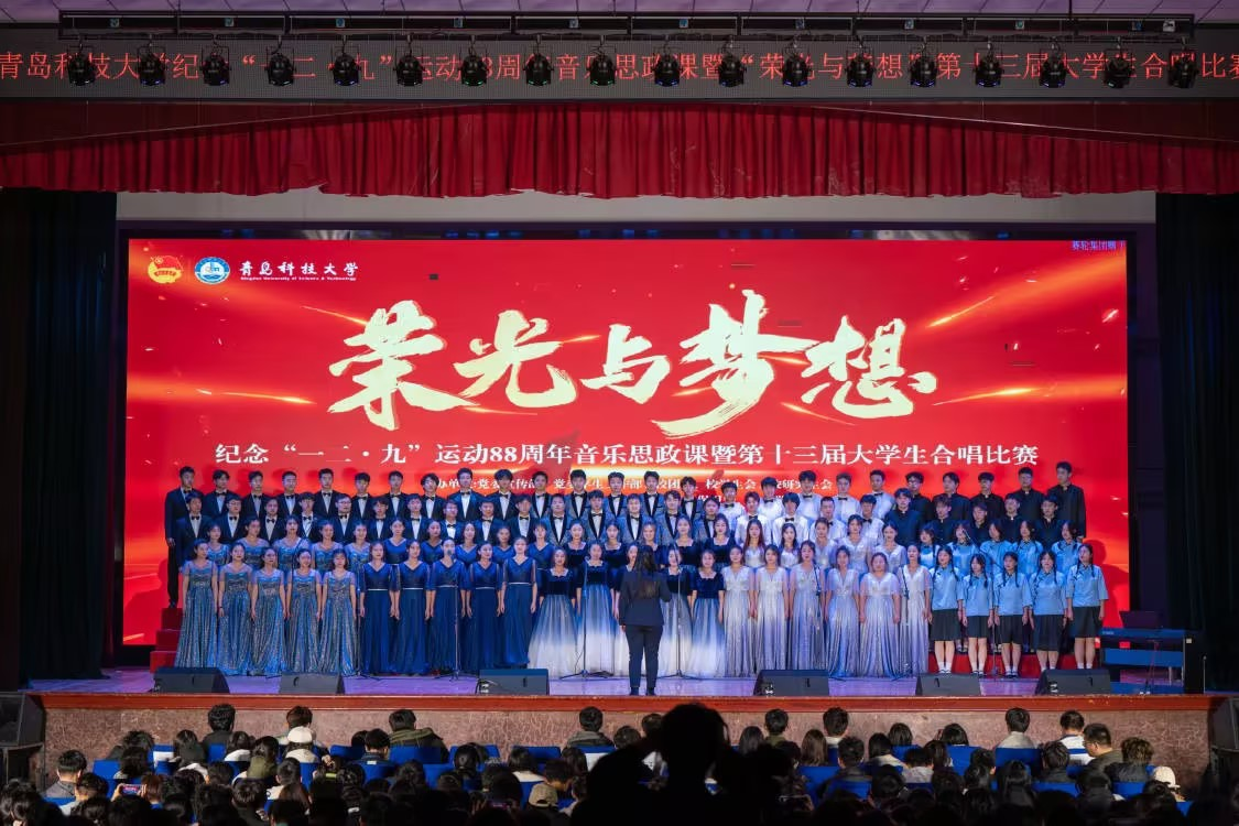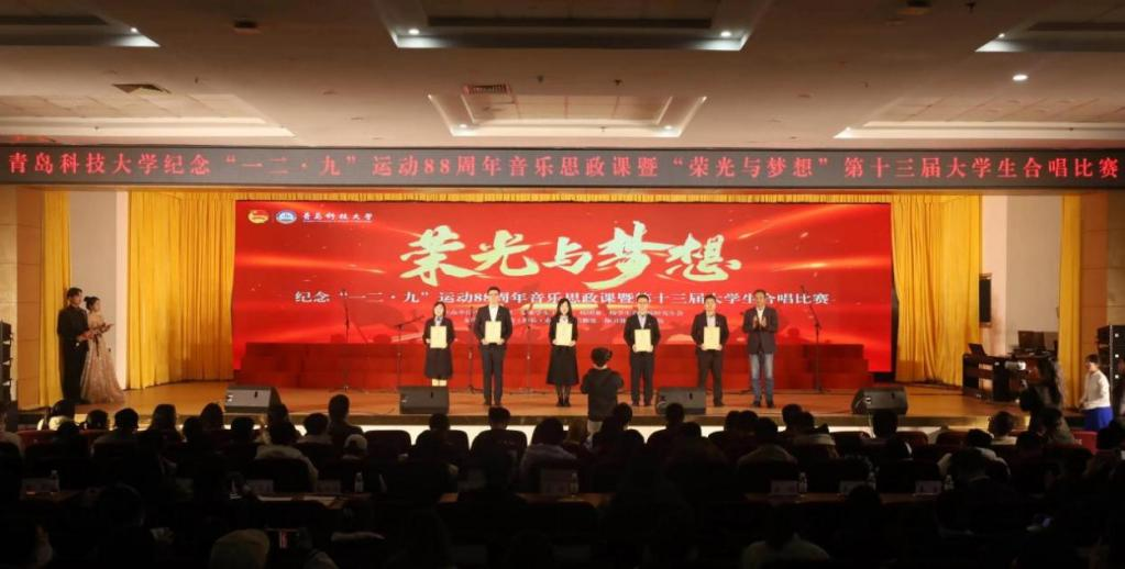 为进一步加强青年学生爱国主义教育,激发青年学生爱校荣校情怀,12月5日、12月9日,太阳成tyc7111cc纪念“一二·九”运动88周年音乐思政课暨“荣光与梦想”第十三届大学生合唱预决赛、总决赛分别在崂山校区第二报告厅、四方校区西礼堂举行,比赛共评选出一等奖2个、二等奖4个和三等奖8个。经过激烈角逐、评委现场评审,tyc7111cc太阳成集团荣获一等奖,取得历史性新突破!