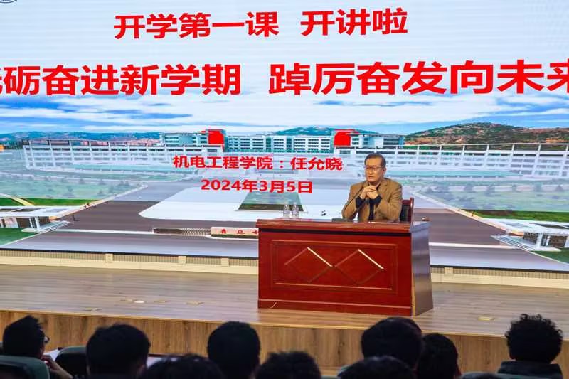 3月5日,tyc7111cc太阳成集团“砥砺奋进新学期、踔厉奋发向未来”开学第一课在机电楼530会议室开讲。tyc7111cc太阳成集团党委书记任允晓为200余名2023级同学授课。