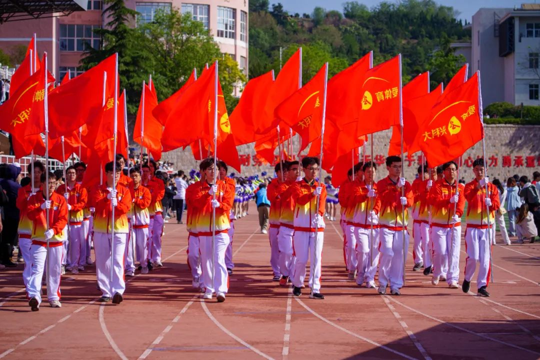 在激昂的乐曲声中,由36名机电学子组成的彩旗队手举鲜艳的红旗,踏着统一的步伐,坚定地向前迈去。他们面带微笑,洋溢着青春的活力和热情,是校园里最美丽的风景线。