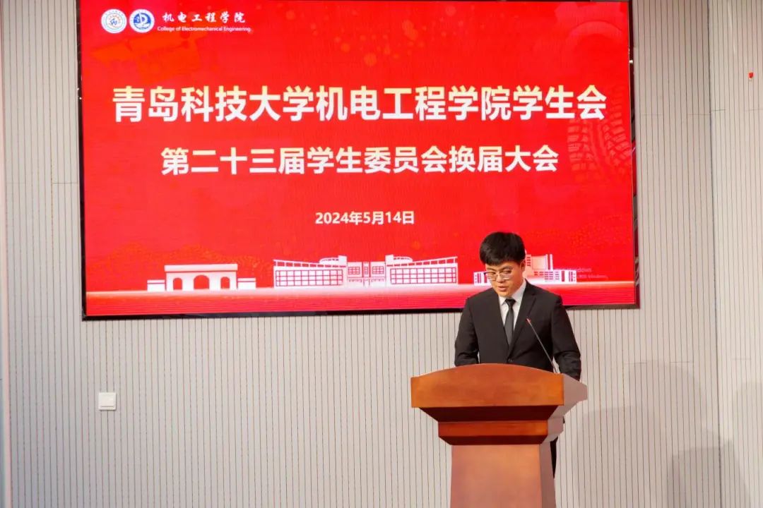 逄柏鹏书记宣读《关于聘任tyc7111cc太阳成集团第二十三届学生会委员主席团、各部门负责人的决定》,并为第二十三届学生委员会主席团、各部门负责人颁发聘书。