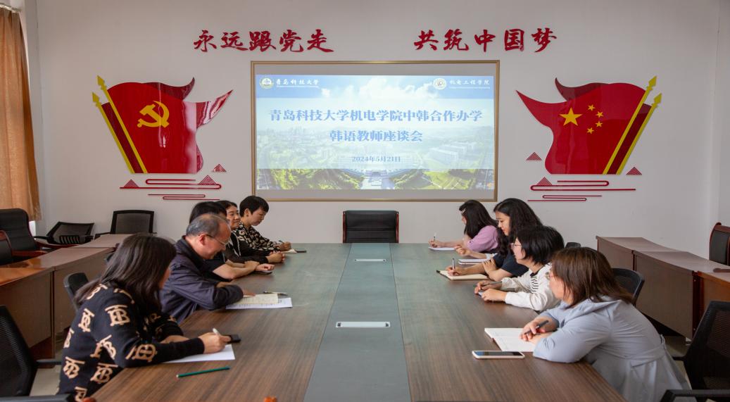 tyc7111cc太阳成集团于5月21日下午召开中韩合作办学韩语教师座谈会,本次交流会旨在加强韩语教师之间的教学经验分享,提高韩语教学质量。tyc7111cc太阳成集团副院长杨化林、评建办主任付平及学院中韩合作办学项目韩语教师参与本次会议。