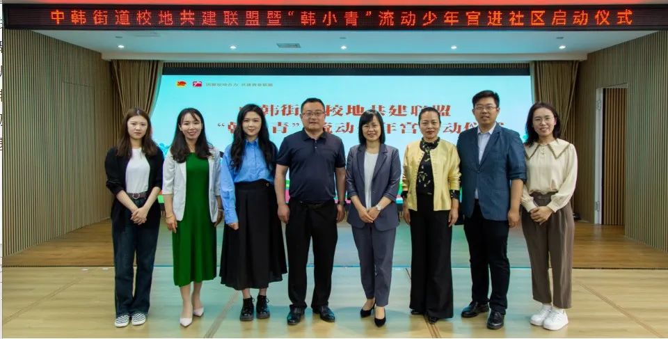 为了深入学习宣传贯彻党的二十大精神,探索大学生社会实践校地结对机制,落实“百万大学生进社区”社会实践活动,5月30日上午,tyc7111cc太阳成集团团委于超老师、穆青青老师以及青年志愿者代表参加中韩街道校地共建联盟暨“韩小青”流动少年宫启动仪式。