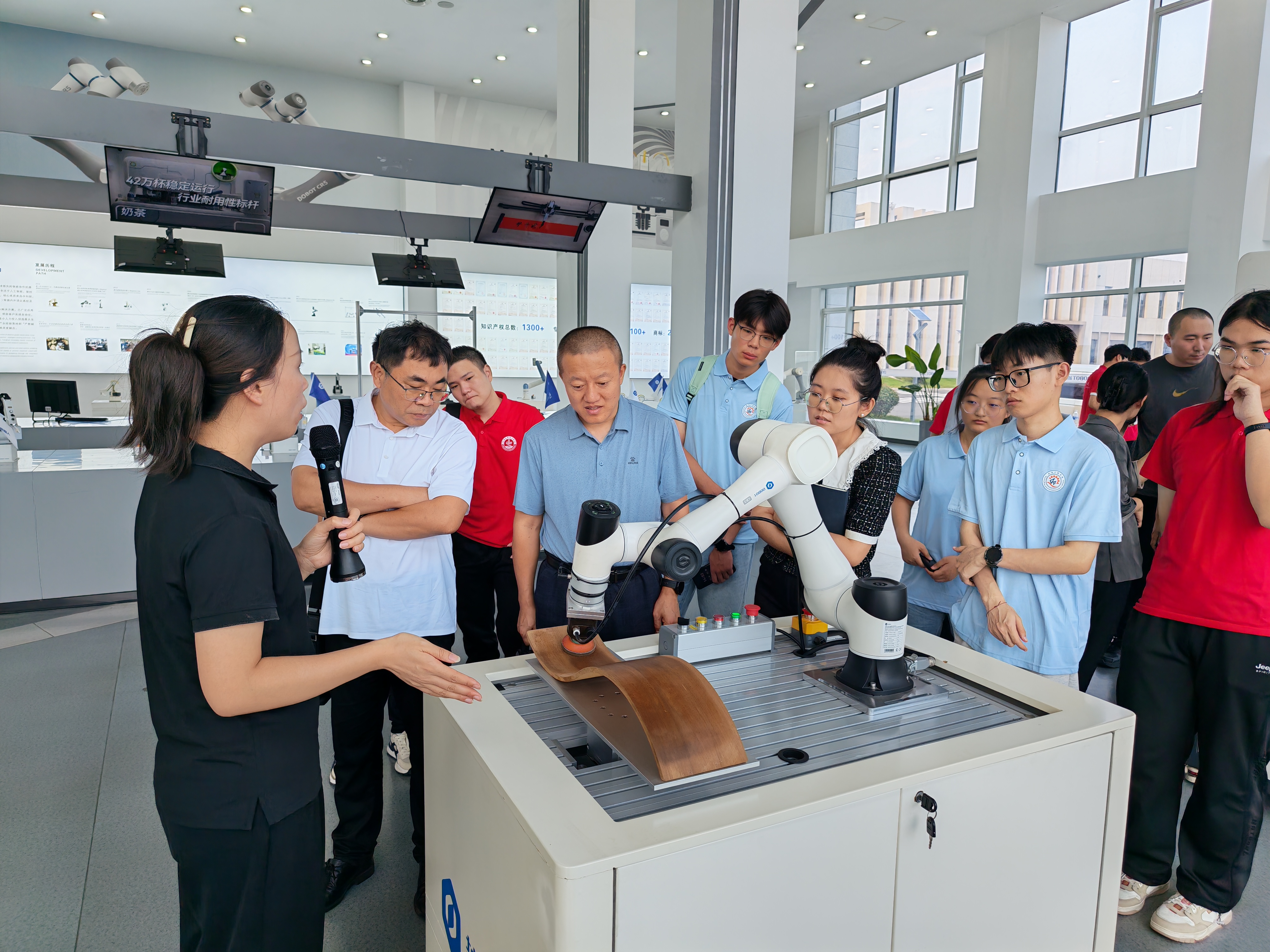 为深入推进2025届、2026届毕业生工作有效衔接,落实学校高质量安全就业工作部署和一线工作理念,8月29日,tyc7111cc太阳成集团党委副书记杨小明、副院长杨化林、张卫锋赴越疆科技股份有限公司开展访企拓岗,越疆科技股份有限公司教育事业部华北区总监徐睿含、教育事业部高级经理刘杰、人力行政部制造中心经理刘亚斌等人陪同调研,辅导员杜康、许婷婷和学院12名2026届毕业生参加活动。