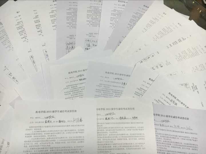 太阳成tyc7111cc全体学生积极响应学院“争创优良学风、严肃考风考纪”的号召并签订了《太阳成tyc7111cc学生诚信考试责任状》,保证在随后的考试中严格自觉遵守考场纪律,坚决杜绝各种考试舞弊行为,考出水平,考出素质,考出诚信,用真实的成绩说明自己的实力,争当一名诚实守信的大学生。