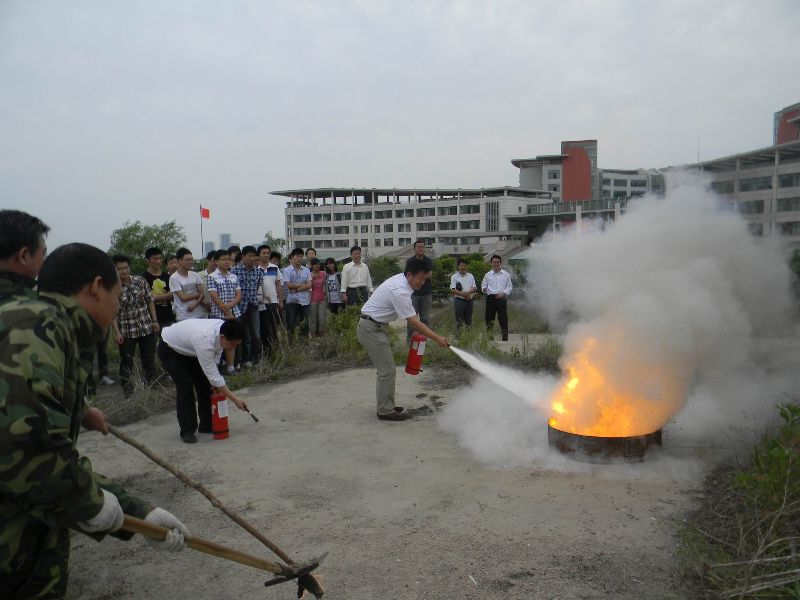 公安处老师向大家介绍了火灾逃生技巧,如首先要明确自己所在位置和逃生出口,在逃生过程中要保持沉着冷静,避免拥挤,捂住口鼻,弯腰或匍匐前进等。接着,向大家讲解了干粉灭火器的使用方法和注意事项,并进行了灭火实战。