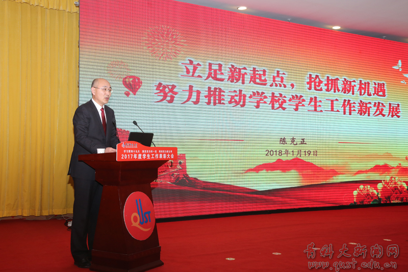 陈克正从思想引领、制度建设、学风建设、文体活动、队伍建设、服务保障体系等方面全面总结了2017年度学生工作,并对今后学生工作进行了具体部署:一是提高认识,加强学习,不断提升思想政治教育科学化水平;二是凝练特色,开拓创新,不断创建学校学团工作新品牌;三是强化学风,注重培养,大力开展创新创业教育和实践;四是强化责任,认清形势,全力以赴确保学生安全稳定。
