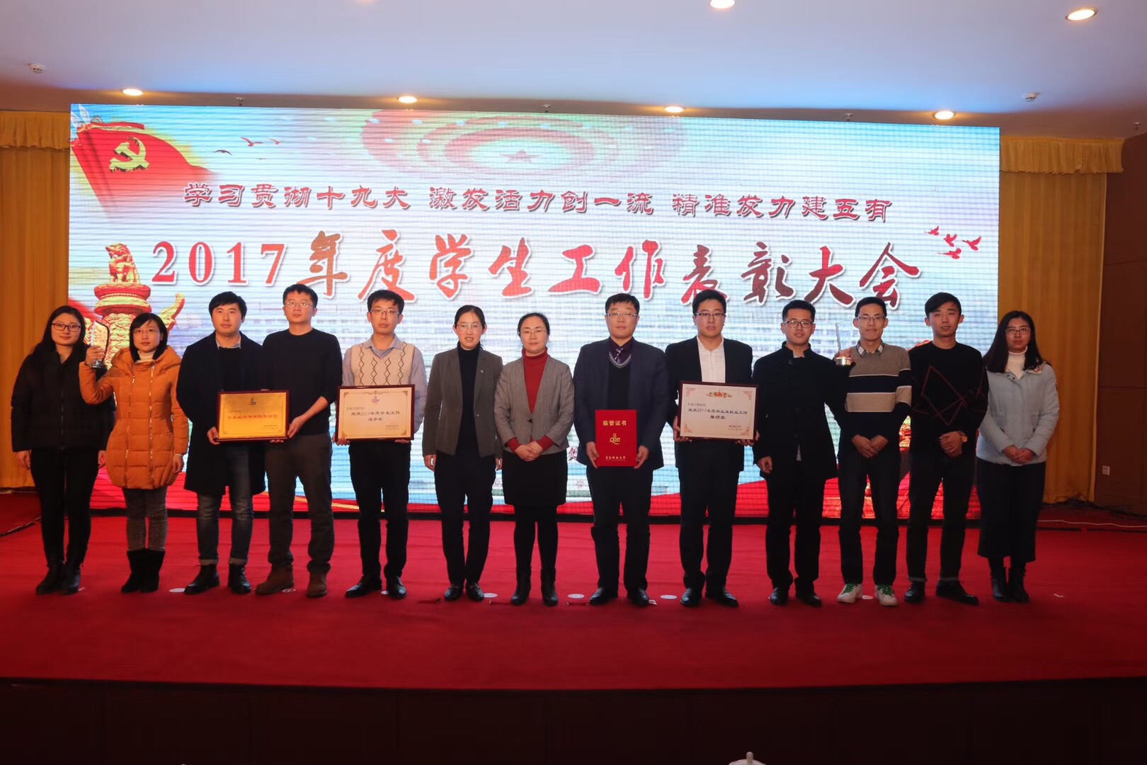 张元利公布了2017年度学生工作奖项获奖名单,并号召全体学生工作者和全体在校生认真学习和领会本次表彰大会会议精神,以学习贯彻党的十九大精神为契机,不断加强学习,努力开创我校学生工作的新局面,为学校各项事业的发展做出新贡献。