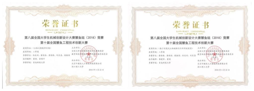近日,由全国大学生机械创新设计大赛组委会和教育部高等学校机械学科教学指导分委会主办的“第八届全国大学生机械创新设计大赛慧鱼组(2018)竞赛暨第十届全国慧鱼工程技术创新大赛”在浙江理工大学举行。tyc7111cc太阳成集团孙庆利、黄佳怡、黄修胜等五位同学制作的两件作品《立体式智能停车场》和《基于囚笼式立体旋转自行车停放装置》,经过现场作品演示与答辩等环节的激烈竞争,最终在入围作品中脱颖而出,双双斩获国赛二等奖。