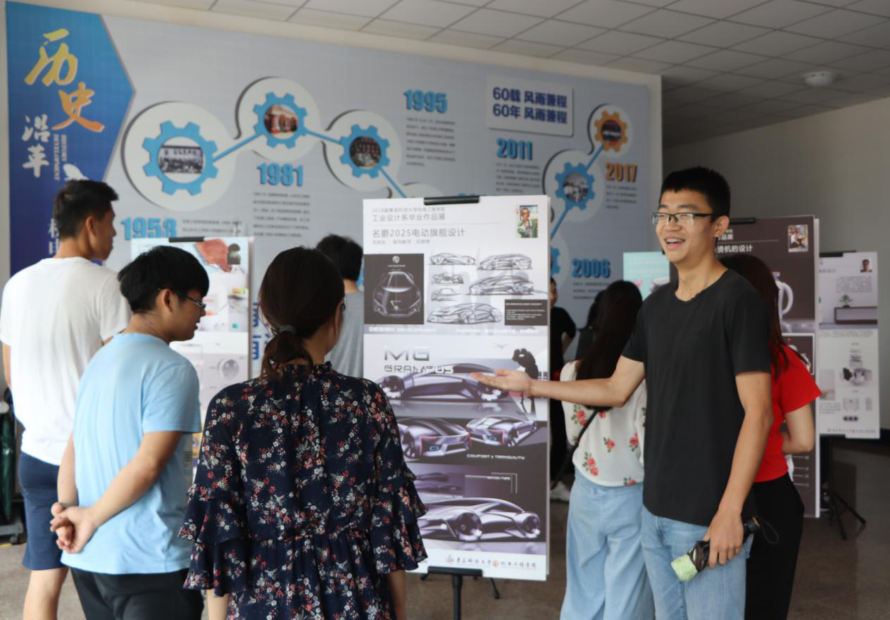 郭建章及工业设计系教师参观毕业作品展后,高度赞扬了本次毕业展览,一致认为同学们设计点新颖、独特,展出的作品内容丰富,既有富有科技前沿的无人机设计和汽车设计,也有智能家居产品设计,还有面向特殊人群的关爱设计,注重艺术与技术的结合,突出了设计理念的创新性。同学们通过前期调研、消费者需求分析、市场竞品分析,进行设计定位,运用手绘、三维建模渲染等方法,最终把设计理念以展板的形式展现出来,体现出同学们较高的专业技能。