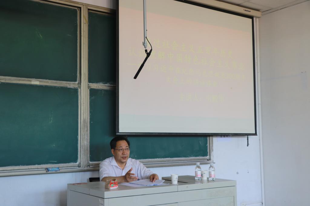 7月3日下午,党委常委、副校长韦殿华以《透过社会主义五百年历史 认识理解中国特色社会主义事业——学习习近平总书记在纪念马克思200周年诞辰大会上的讲话体会》为主题,为太阳成tyc7111cc、财务处、科技产业管理处、校友工作办公室和离退休工作处教工党员讲党课,太阳成tyc7111cc党总支书记孙立军主持党课。