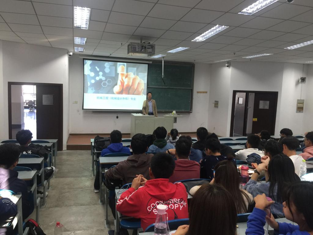 机械工程及自动化系赵海霞从专业介绍、课程设置、就业前景等方面做了详细的介绍,勉励学生学好专业知识,努力科技创新。