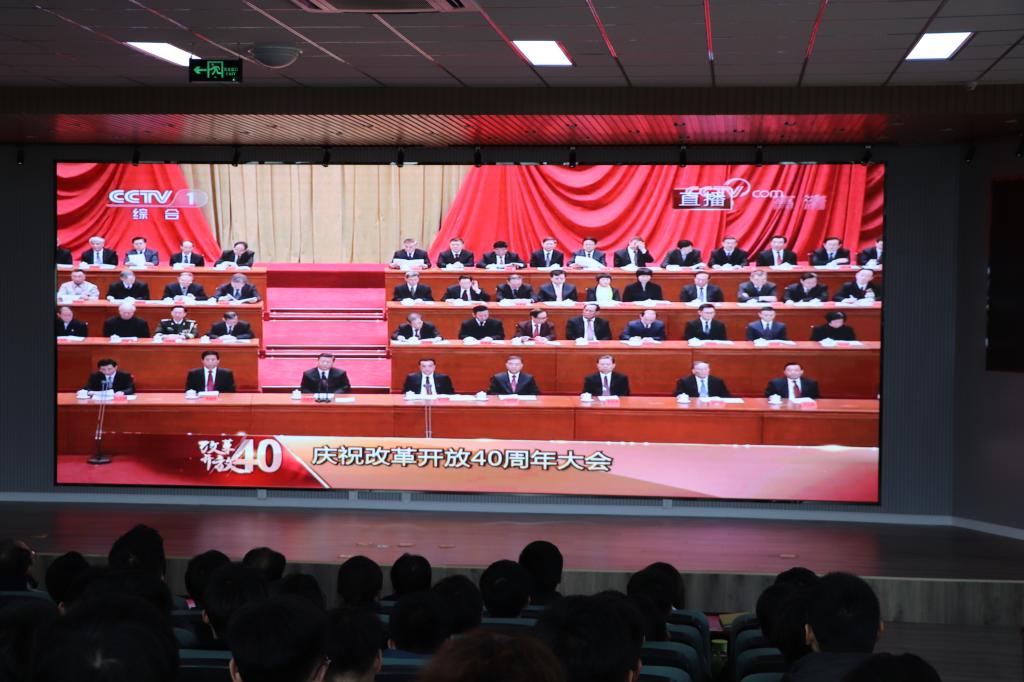庆祝改革开放四十周年大会于12月18日上午在北京人民大会堂隆重召开,习近平总书记发表了重要讲话。学院采取集中学习和各自学习的方式结合。学院党总支在太阳成tyc7111cc楼530会议室集中收看庆祝改革开放40周年大会,太阳成tyc7111cc领导班子参加了活动,学院教师代表、党员代表、团、学代表、入党积极分子代表、研究生代表、班级代表共190余人参与了观看学习。各党支部、教研室、班团也在办公室、教室、宿舍分别组织了观看。