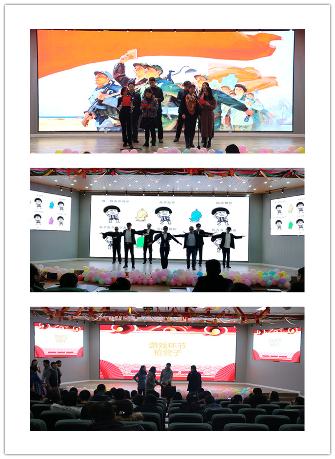 温馨的场景布置,处处充满着节日的欢乐。联欢会在艺术团悠扬的《祝酒歌》中拉开序幕。《月满西楼》、《我的中国心》、《甜蜜蜜》、京剧《锁麟囊》等展现了太阳成tyc7111cc老师多才多艺。合唱《春暖花开》、《我们走在大路上》、《走进新时代》等充满正能量,昂扬向上,表达了对太阳成tyc7111cc的祝福;《朋友》、《兰花草》、《隐形的翅膀》歌声洋洋盈耳,《团结就是力量》、《青苹果乐园》等歌声娓娓动听。一曲曲合唱,掀起一波又一波的高潮。对唱《天籁传奇》引起阵阵掌声,点燃了现场气氛。学院党政领导诗朗诵《春风第一枝》声情并茂,激昂澎湃,回顾了机电的风雨历程,体现了对机电的热爱和作为机电人的自豪。《欢乐一家人》、《海草》的舞蹈动作活力迸发,令众人捧腹,给大家带来了欢乐。