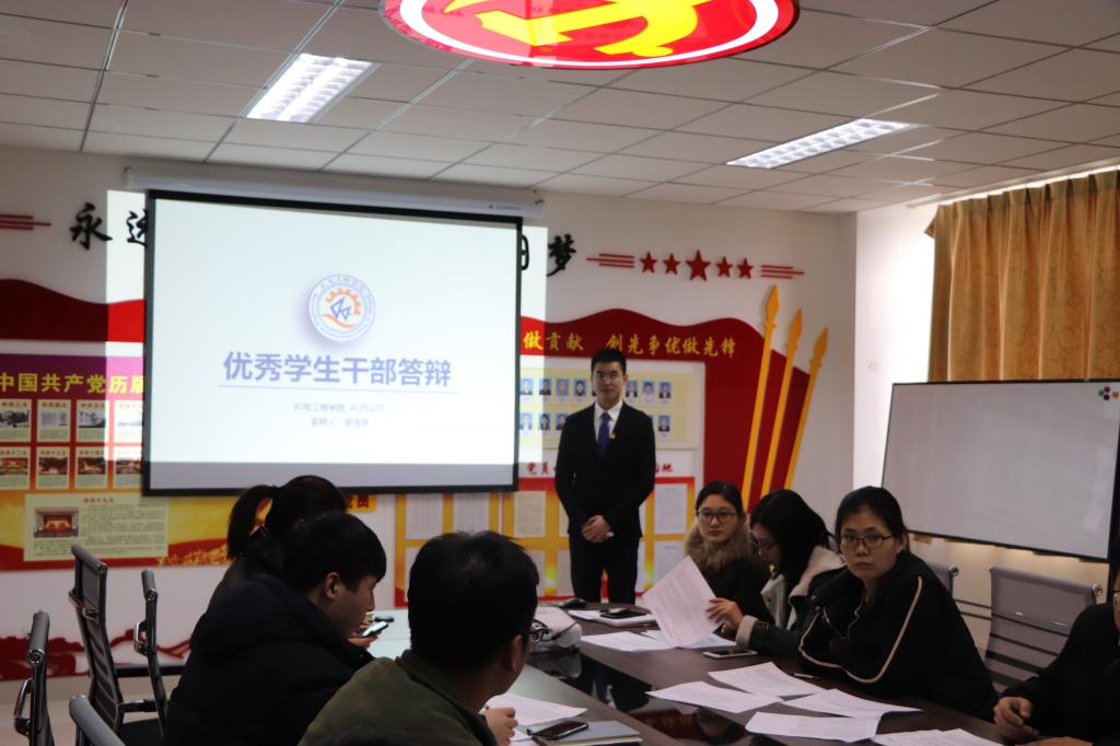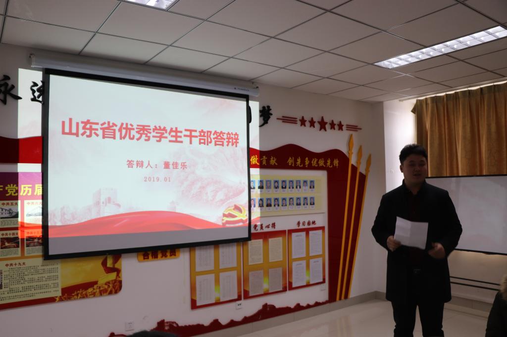 1月18日下午,太阳成tyc7111cc在505会议室召开2018年度山东省优秀学生、优秀学生干部和先进班集体答辩会。太阳成tyc7111cc党总支副书记兼副院长王伟、分团委书记王作辉及分团委老师参加了评审。