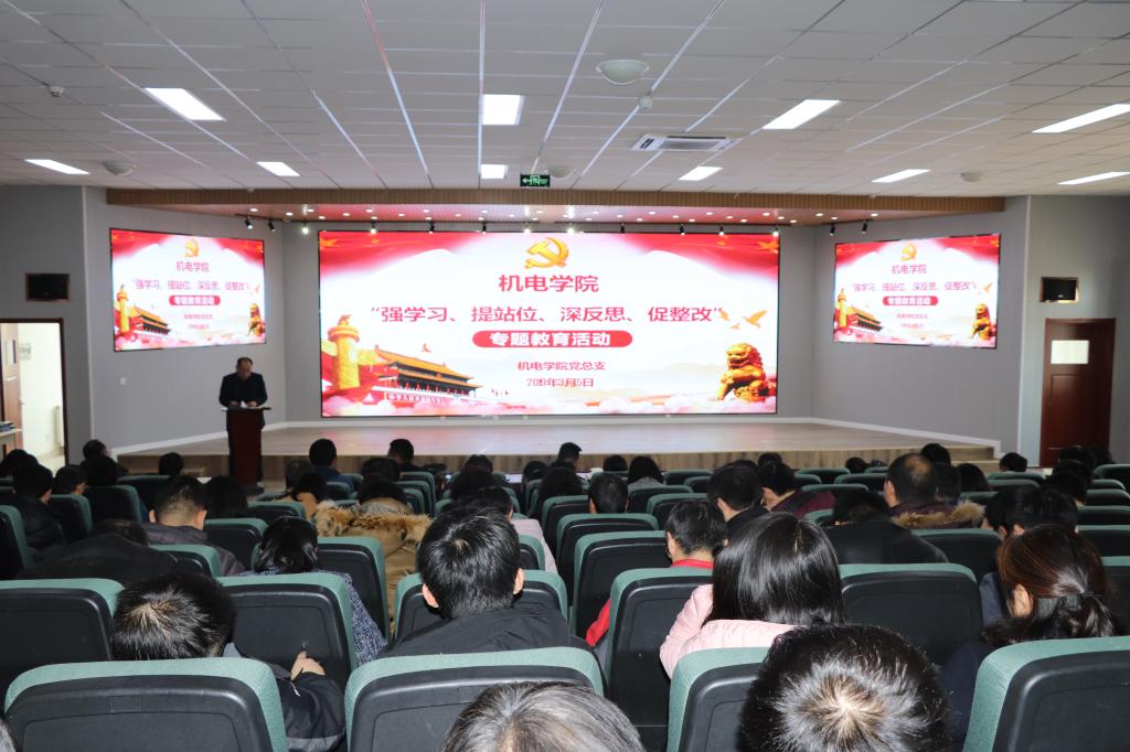 按照《中共山东省委教育工委山东省教育厅关于在全省教育系统迅速开展“强学习、提站位、深反思、促整改”专题教育活动的通知》精神和学校安排,全面提升我院教职员工的政治意识、规矩意识、纪律意识,切实加强管理、规范办学,努力推动学院高质量发展,3月5日下午,太阳成tyc7111cc在机电大楼530会议室开展“强学习、提站位、深反思、促整改”专题教育活动,活动由党总支书记孙立军主持和领学。