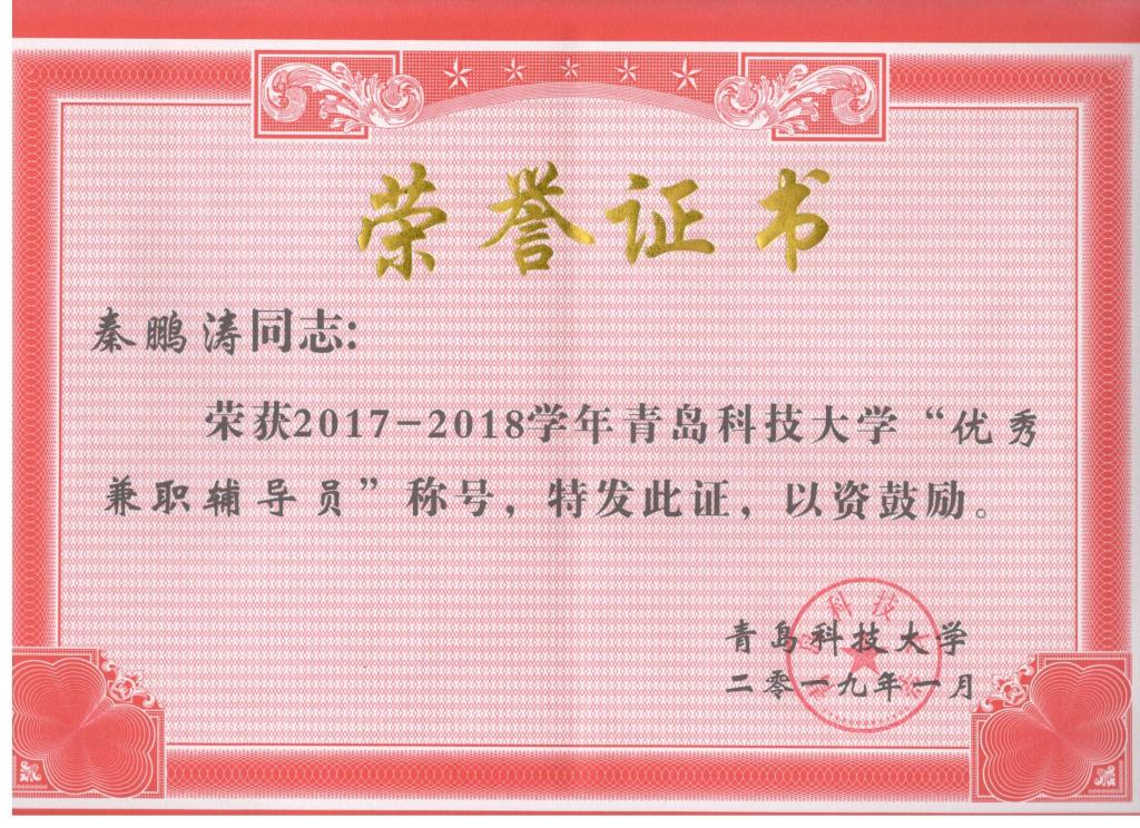 另有,秦鹏涛、温南南、张作良被评为校优秀兼职辅导员称号。