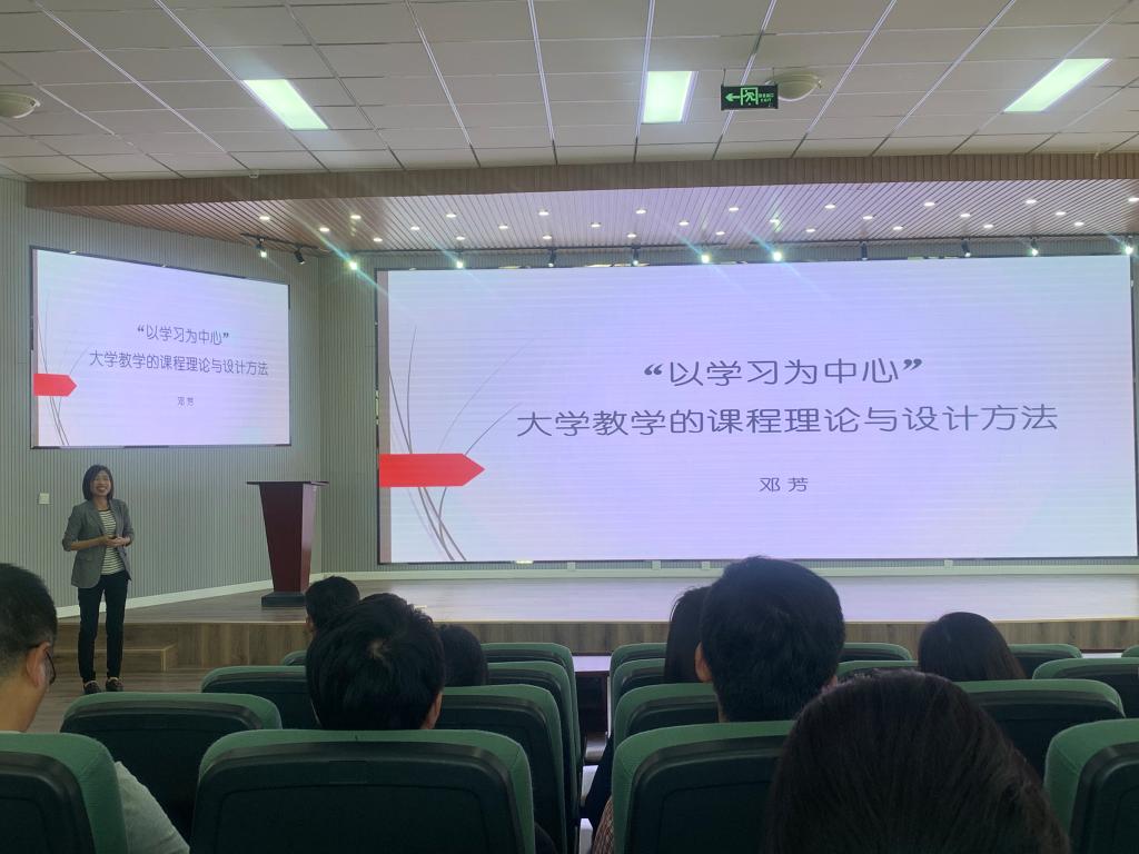 邓芳老师以《以学习为中心--大学教学的课程理论与设计方法》为题为大家进行了培训,主要讲了“以学习为中心”课程设计、教育学课程理论和教学设计方法。