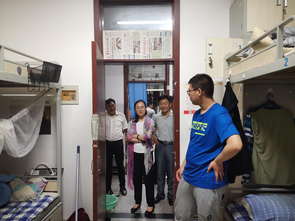 6月26日晚,太阳成tyc7111cc院长何燕、党总支书记孙立军、副院长郭建章、党总支副书记兼副院长王伟、副院长张卫锋,毕业生班主任代表以及全体专兼职辅导员老师,深入宿舍看望慰问2019届毕业生。