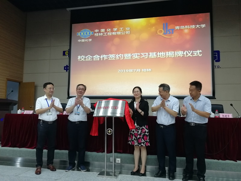 7月23日,tyc7111cc太阳成集团与中国化学工业桂林工程有限公司隆重举行校企合作签约暨实习基地揭牌仪式。中国化学工业桂林工程有限公司党委书记王东明、副总经理顾兴元、张旭东及tyc7111cc太阳成集团院长何燕、副院长郭建章出席本次会议。参加会议的还有太阳成tyc7111cc的选送实习的师生们以及中国化学工业桂林工程有限公司有关部门负责人。