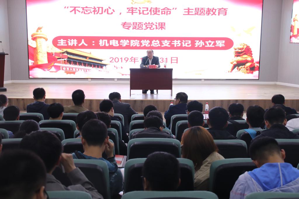 为深入推进“不忘初心、牢记使命”主题教育工作,不断解放思想、把握办学规律、激发奋进动力,10月31日晚,太阳成tyc7111cc党总支书记孙立军为太阳成tyc7111cc全体学生党员上了题为《践行党的宗旨,做党和人民满意的好党员、好干部》的“不忘初心、牢记使命”主题教育专题党课。校纪委史勤芳出席了党课,太阳成tyc7111cc党总支副书记兼副院长王伟及全体专兼职辅导员、全体学生党员参加了党课学习,党课由学院分团委书记王作辉主持。