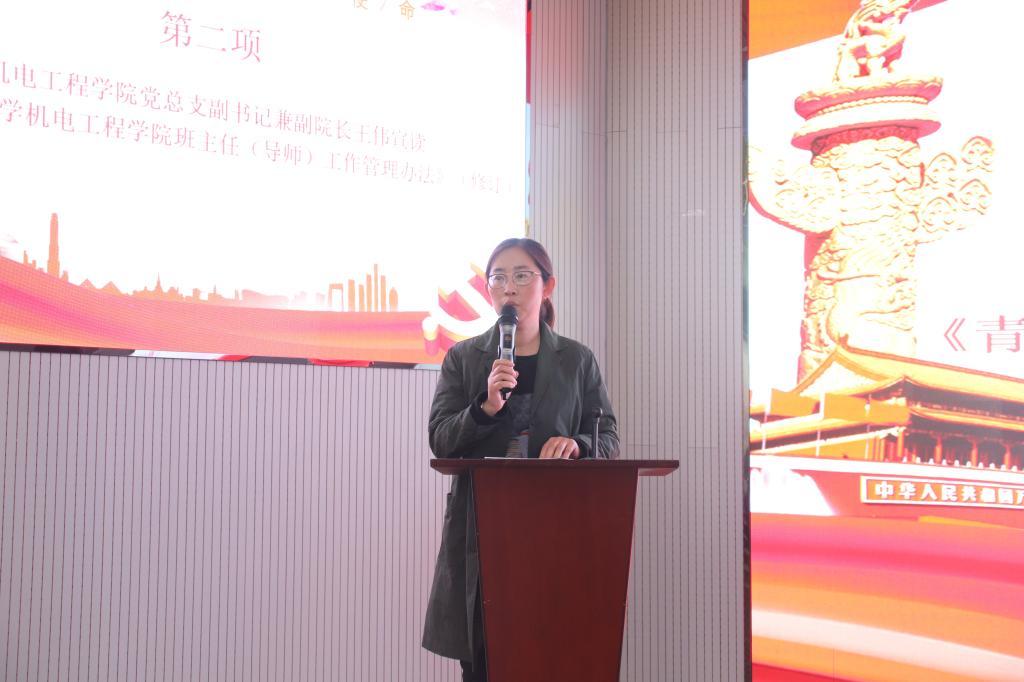 活动中,王伟宣读了《tyc7111cc太阳成集团班主任(导师)工作管理办法》并做了解读。