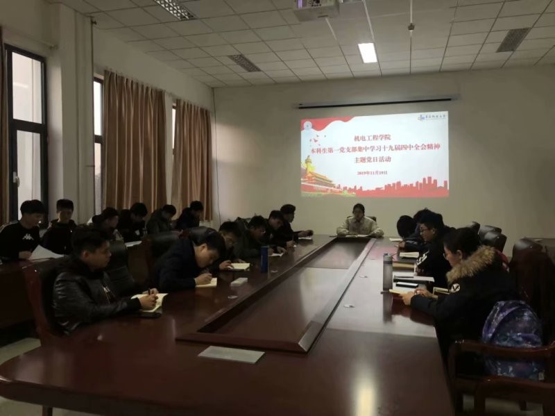 根据学校《关于持续深入开展“不忘初心、牢记使命”主题教育学习教育的通知》、tyc7111cc太阳成集团“不忘初心、牢记使命”主题教育安排,11月19日下午,本科生第一党支部在518会议室开展了学习十九届四中全会精神主题党日活动,活动由党支部副书记郭佩佩主持,全体学生党员参加了活动。