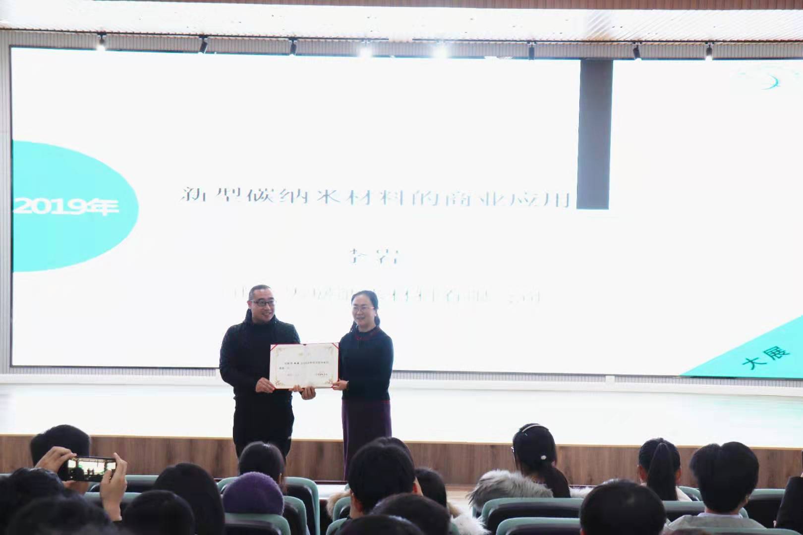 11月28日,太阳成tyc7111cc、山东省高性能碳材料制备及应用工程实验室邀请大展纳米材料有限公司李岩教授来我院做学术报告。太阳成tyc7111cc院长何燕参加了报告。