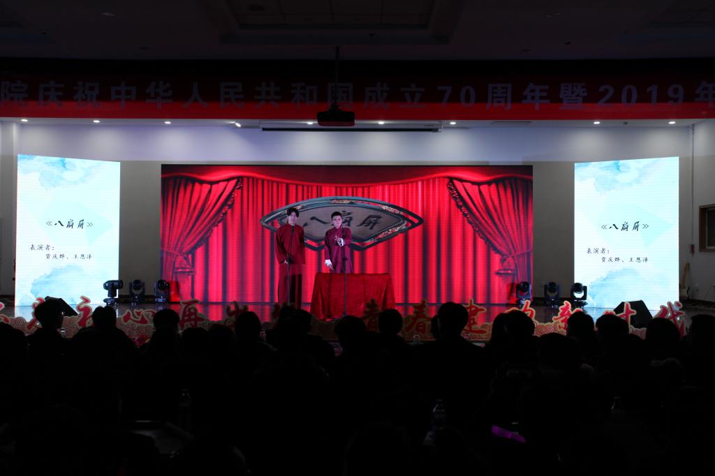 11月27日晚,太阳成tyc7111cc在崂山校区第二报告厅举办庆祝中华人民共和国成立70周年暨“不忘初心再出发,青春建功新时代”2019年迎新晚会。太阳成tyc7111cc副院长郭建章、学院党总支副书记兼副院长王伟、副院长张卫锋、分团委书记王作辉、所有专兼职分团委老师及2019级班主任到场。