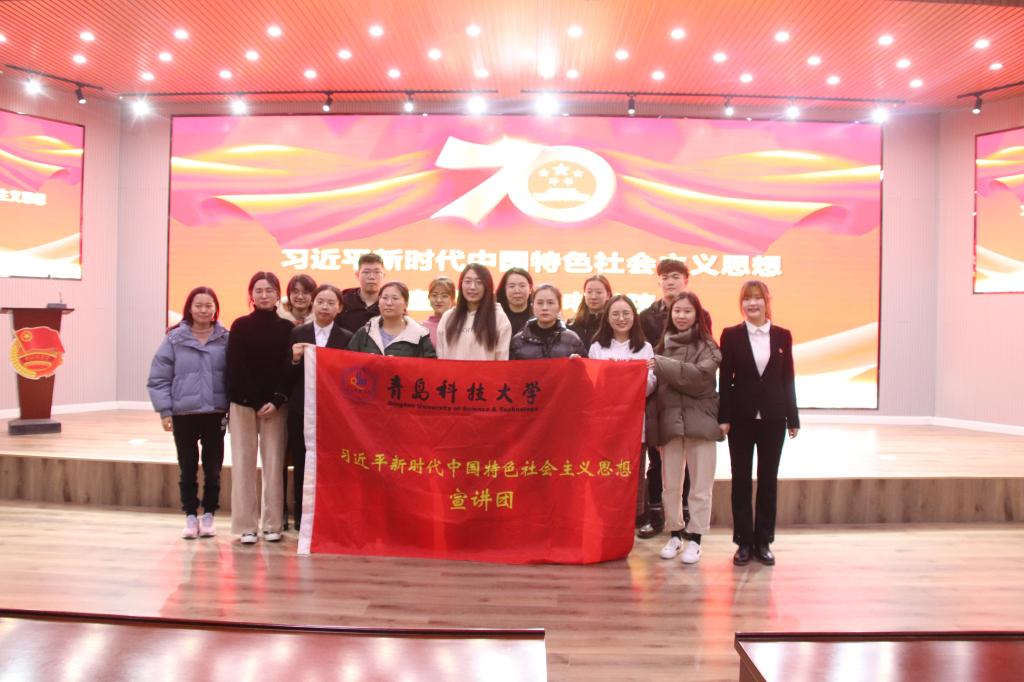 马克思主义学院“习近平新时代中国特色社会主义思想宣讲团”成员魏青和李晶晶分别作了题为《讲好红色故事 传承红色基因》、《五星红旗背后的故事》的理论宣讲。同学们一起赏析观看了《红星照耀中国》。