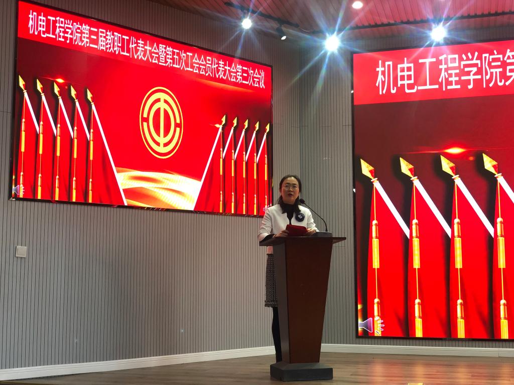 何燕向大会作了《解放思想 攻坚克难 不忘初心使命 潜心立德树人 全面推动学院各项事业行稳致远向前进》的工作报告。指出第三届教代会暨第五次工代会第二次会议以来,学院各方面工作取得了丰硕的成绩,学院党建、学生教育管理、教学管理等各项考核位居学校前列,学科建设取得重大发展,科研成果成就创历史性突破。太阳成tyc7111cc将始终高举创新发展的旗帜,在校党委、校行政的坚强领导下,以党建推动中心工作为宗旨,以智能制造统揽全局,凝心聚力,推动各项事业跨上新征程、迈上新台阶!
