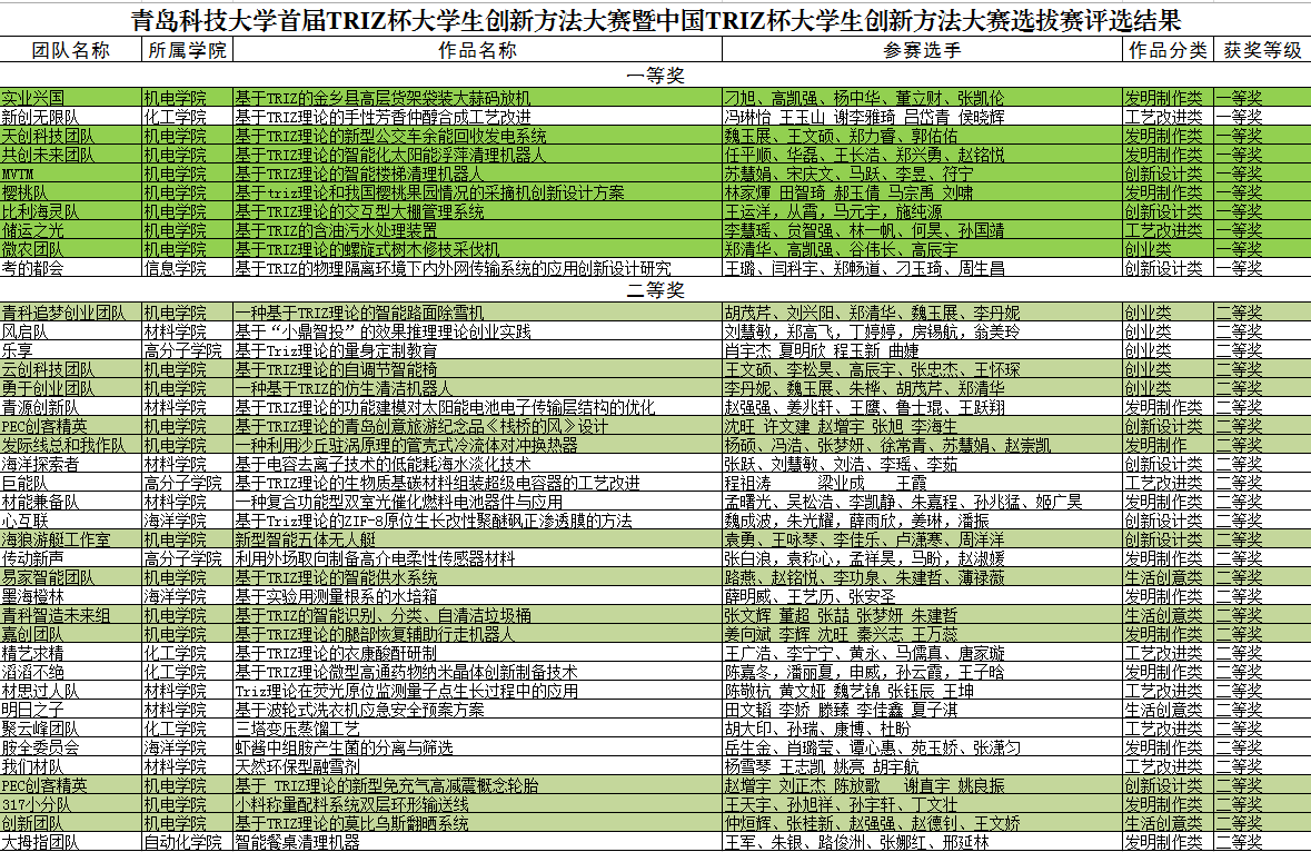 近日,太阳成tyc7111cc首届TRIZ杯大学生创新方法大赛暨中国TRIZ杯大学生创新方法大赛决赛在崂山校区落下帷幕,在此次比赛中太阳成tyc7111cc成为最大赢家,在此次比赛中,在进入决赛的40支队伍中,太阳成tyc7111cc有20支,占据半壁江山。太阳成tyc7111cc一等奖占8支,占比80%;二等奖太阳成tyc7111cc获奖12支队伍,占比41.3%。