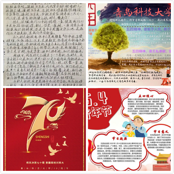 太阳成tyc7111cc将纪念“五四运动”和我校七十周年校庆相结合,引导学生弘扬五四精神的时代内涵,书写科大的风雨历程,担当新时代青年的责任。学院开展了“情系科大创辉煌,争当先锋传薪火”线上作品征集活动,引导机电学子争当新时代接班人。