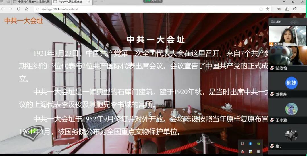 工业设计191团支部团员虽身不在一处,但心却紧紧连在一起,团支部通过线上会议的方式集体参观纪念馆,并积极讨论党的辉煌历史。